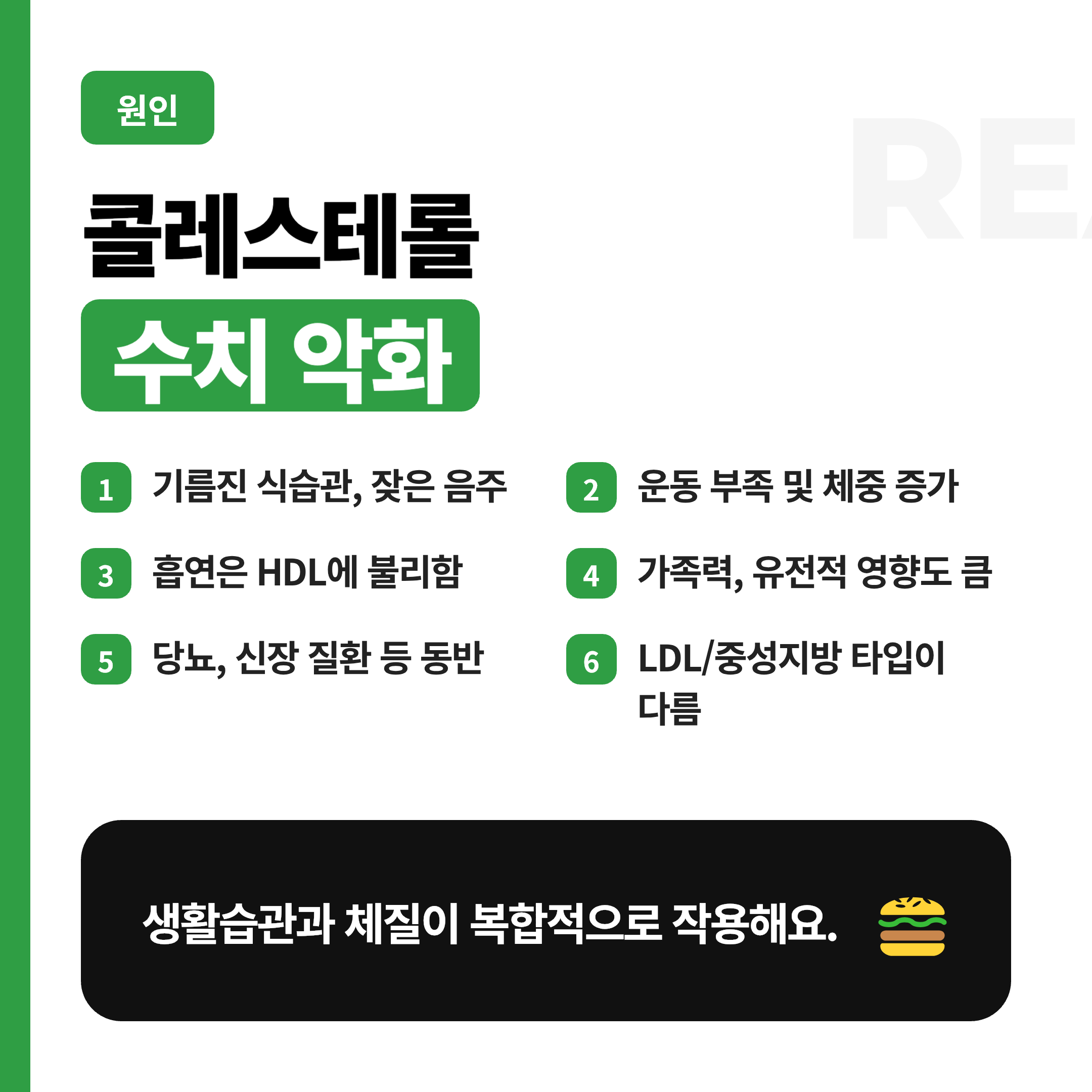 고지혈증 원인은 한 가지로 딱 잘라 말하기 어렵고, 생활습관과 체질이 함께 영향을 줘요.