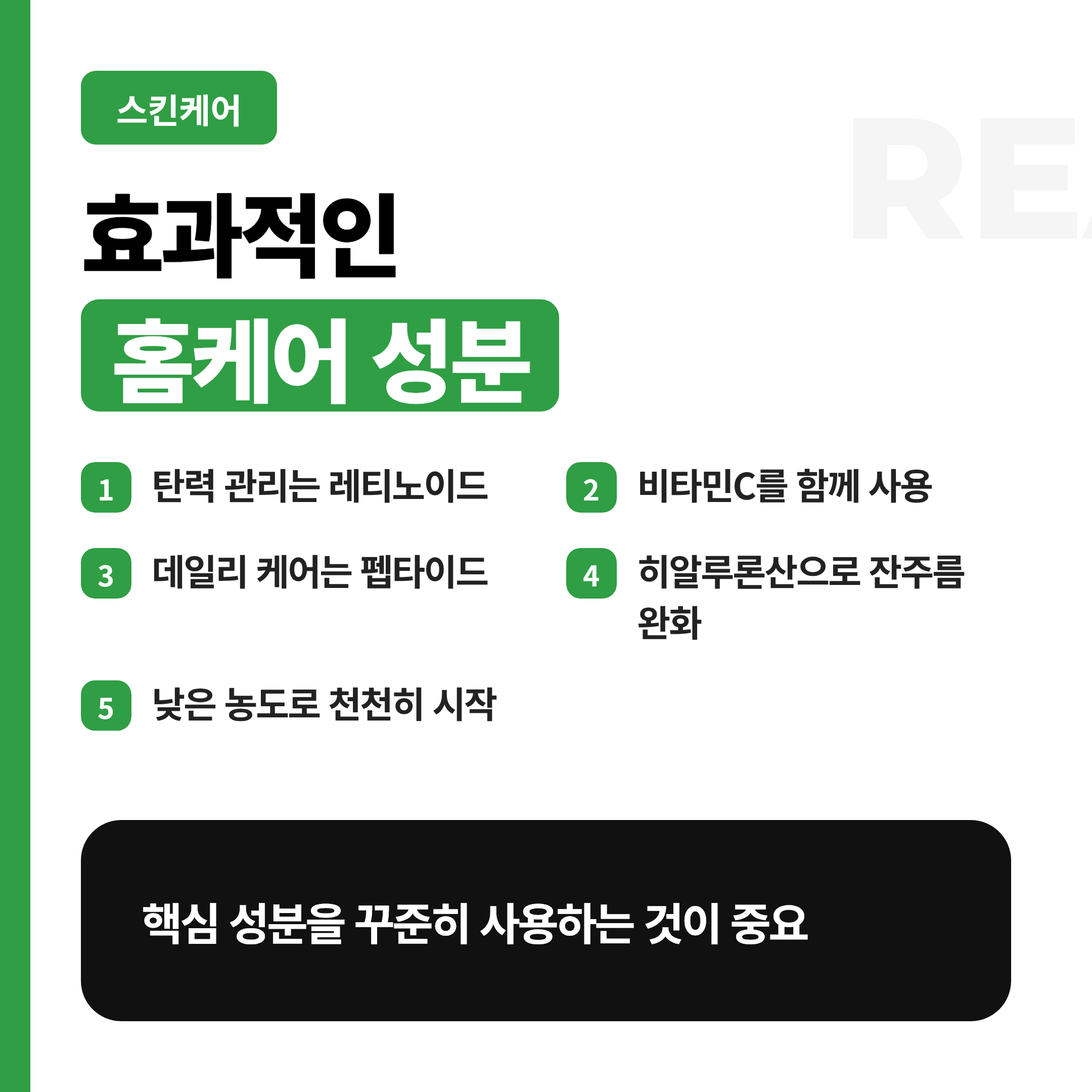 셋째 홈케어 성분은 레티노이드와 비타민C와 펩타이드 중심이 좋아요